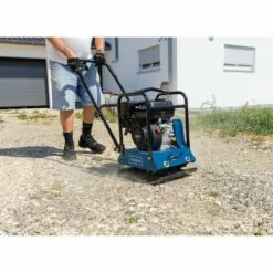 Serienmäßig mit stufenloser hydraulischen Umschaltung zwischen vorwärts und rückwärts. Hiermit können große Flächen mit leistungsstarken Maschinen verdichtet werden. Rüttelplatten mit sehr hoher Verdichtungsleistung in den unterschiedlichsten Ausführungen je nach Kundenbedarf. Bei allen Modellen ist die Maschine durch einen hochwertigen Schutzrahmen aus Stahl durch Beschädigungen geschützt. Inkl. Transporthaken.Sonderzubehör- Gummi-Matte inkl. HalterStufenlos hydraulisch verstellbar Vorwärts- bzw. RückwärtslaufSelbstspannendes Kupplungssystem für geringeren KeilriemenverschleißRiss- und bruchfeste Grundplatte aus gehärtetem StahlFührungsholm bei Transport oder Lagerung in vertikaler Position arretierbarNeuer Schutzkäfig bietet zuverlässigen Schutz für den Motor und das GerätExtra starke Gummilager verbaut | Eigenschaften: Zentrifugalkraft: 40 kN, Flächenverdichtung: 720 m²/h, Motortyp: 1B30, Plattengröße: 600×840 MMT, Arbeitsbreite: 600 MMT, Vibrationsfrequenz: 79 HTZ, Gewicht: 285 kg, Max. Geschwindigkeit: 20, Leistung: 7,6 PS